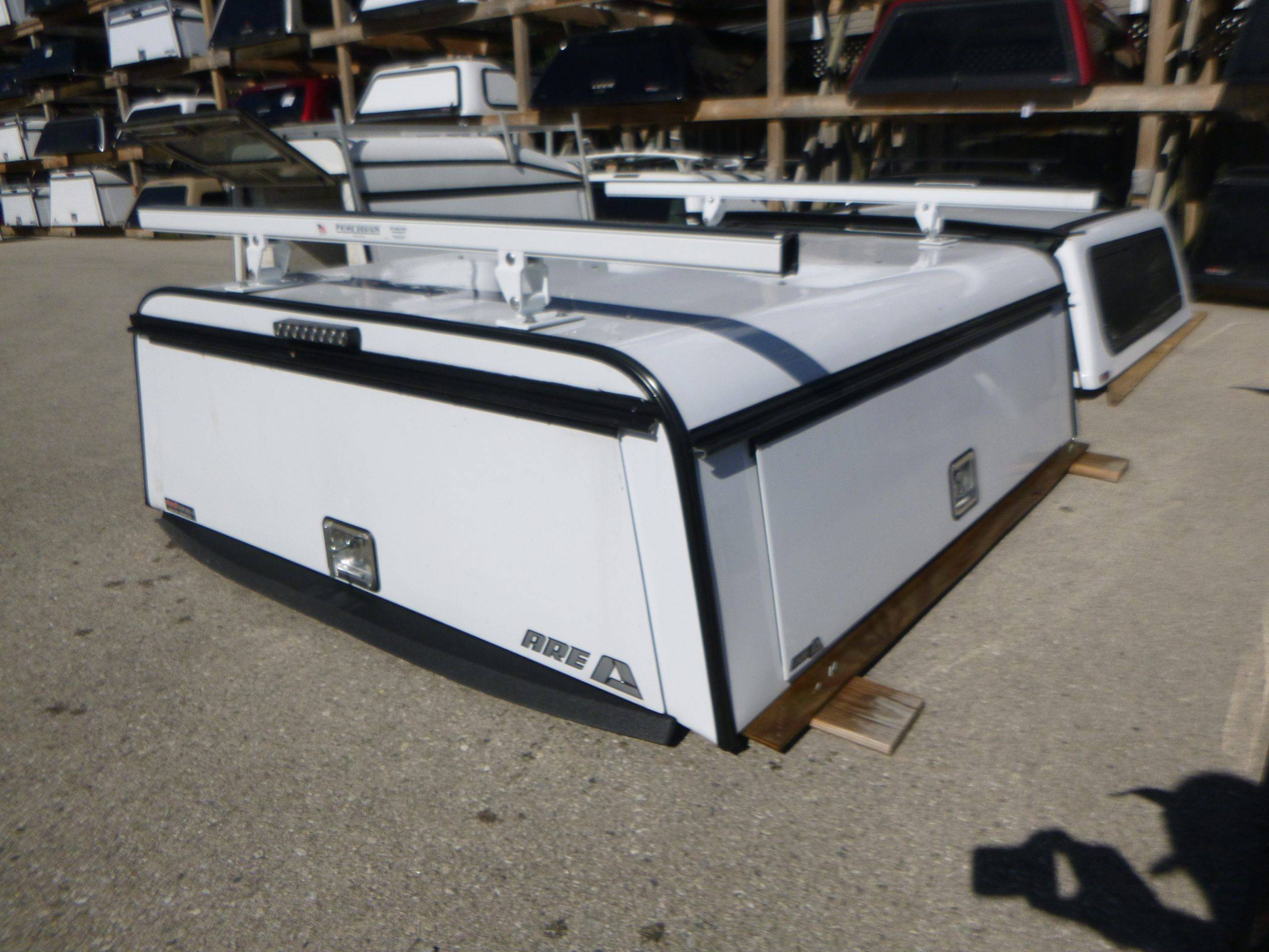 2019 – 2023 Ford Ranger 6′ White ARE Contractor Truck Cap with both side access doors and Roof Rack
