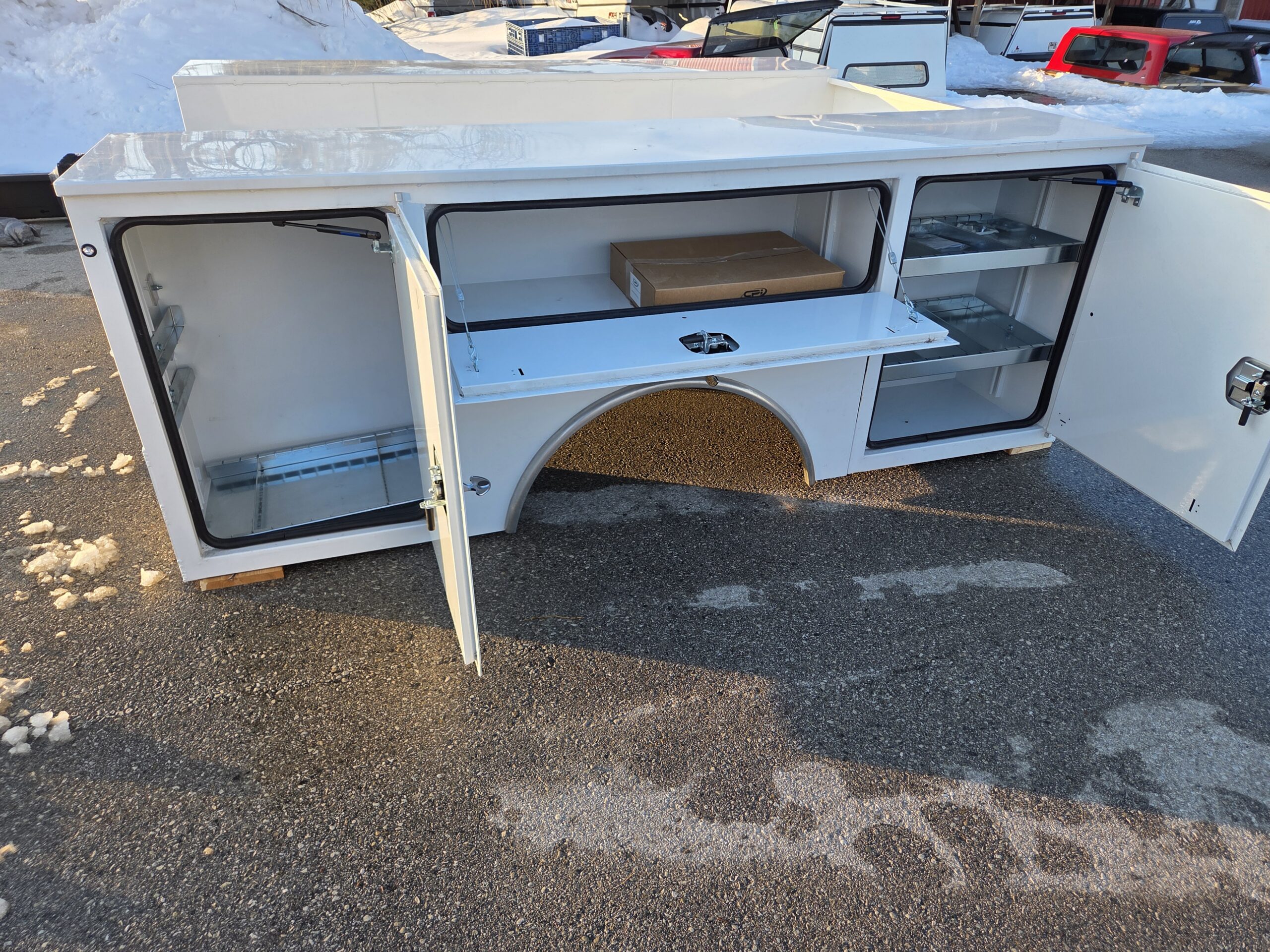 Truck Body is 110″ long by 94″ wide and set up for trucks with a 60″ cab to axle measurement.