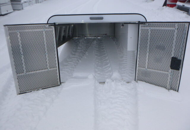 2021 - 2026 Ford F150 8' White ARE Contractor Truck Cap with barn doors, passenger side toolbox and driver side access door